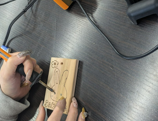 京都府産の杉をつかってオリジナルのキーホルダーを作ってみませんか?専用の焼きゴテを使って縁取り施し、色を塗れば自分だけのキーホルダーの出来上がり。是非、体験してみてください。