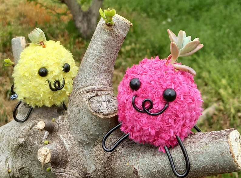 土台となる水苔に、好きな色の毛糸を巻き、目や口を付け、頭にちょこんと多肉植物を植えたら、世界で1匹の自分だけのペットのできあがり!小さなお子さまから大人まで楽しんでいただけます。