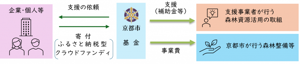京都市では、豊かな森林と「木の文化」を未来へと継承・発展させるため、木や森林の良さを生かした新たな商品・サービスの開発、社会的課題の解決に繋がる事業等に取り組まれる事業者をふるさと納税型クラウドファンディングを通じて支援する「森林の応援団づくり事業」を実施しています。
