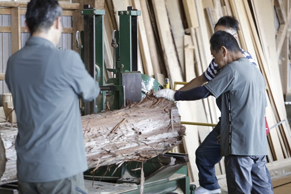 木材の人工乾燥機に関しては、自社設備がないため近隣の製材所に依頼していますが、原木の調達から加工、製品として仕上げるまでの一貫生産が可能であり、幅広い木工需要に応える体制が整っています。