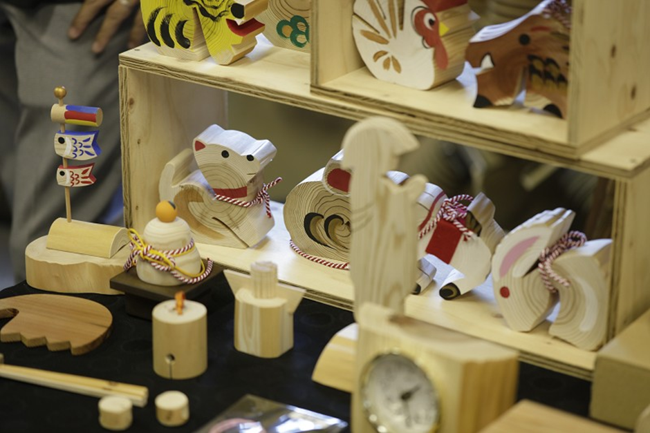 毎年の干支を形取った置物をはじめ、ほのかな光を透かす照明、正月の風物詩である鏡餅、愛らしい表情の雛人形、さらには日用品としての箸や伝統を感じさせる提灯など、暮らしに寄り添う多彩な小物が揃っています。
