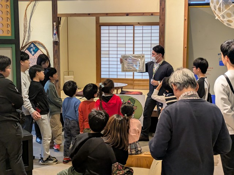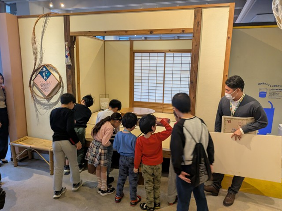 (得古座敷(えこざしき)をじっくり見学する子どもたち)