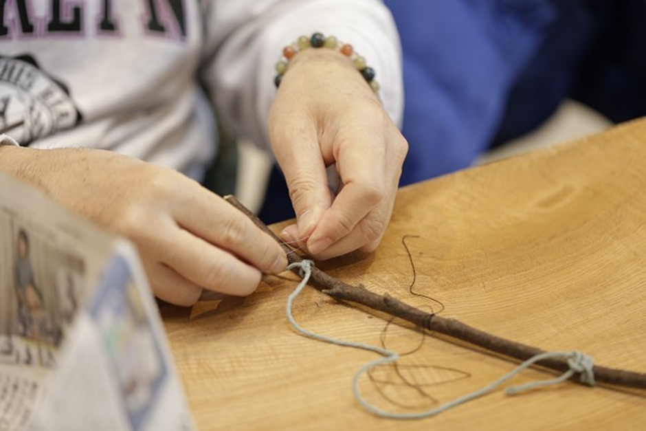 ワイヤーで一つひとつ丁寧につなぎ合わせていくと、自然の造形を活かした個性豊かな作品が生まれていきます。森に「同じ形の葉がない」ように、作品にもそれぞれの個性が表れます。