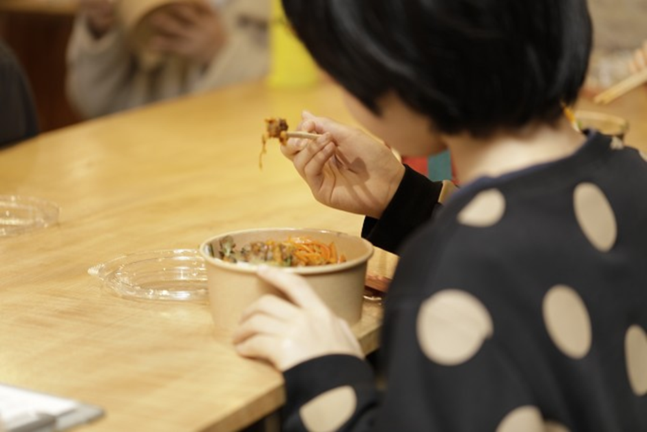 (給食を頂く参加者)