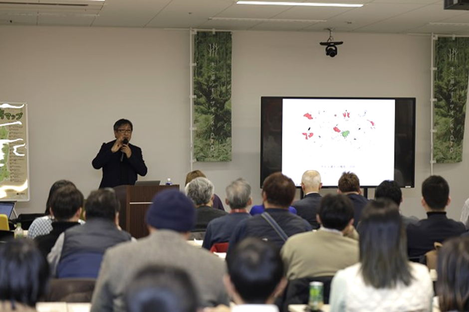 武蔵野美術大学教授であり日本スギダラケ倶楽部発起人として活動されてきた若杉浩一氏にご登壇頂き、自身の経験をもとに「木材」と「地域社会」を軸とした新しいデザインのあり方についてご講演いただきました。