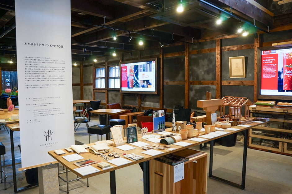 2026年1月には、河原町五条のFabCafe Kyotoにて「木と暮らすデザインKYOTO展」を開催しました。会場となったFabCafe Kyotoは、ものづくりやデザインに関心の高い人が集まる場所であることから、来場者が作品をじっくりと見ながら交流できる環境で、約10日間にわたり、パートナーが手がける木製品や取り組みを展示し、来場者に京都の木の魅力を紹介しました。