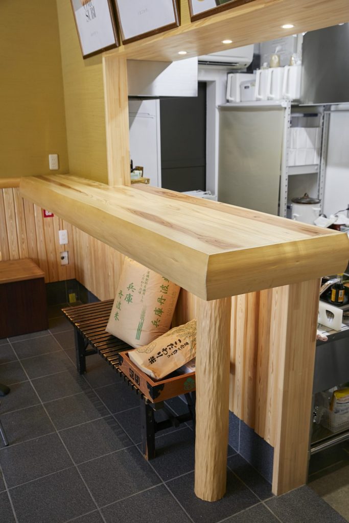京都の伝統産業である京漬物を気軽に召し上がっていただける空間づくりを目指しました。インバウンド観光客の多い地区で、漬物の体験だけでなく、北山杉の温かい空間を楽しんでいただけます。現在では、店舗で北山杉で作った机で漬物のおにぎりを召し上がっていただけます。