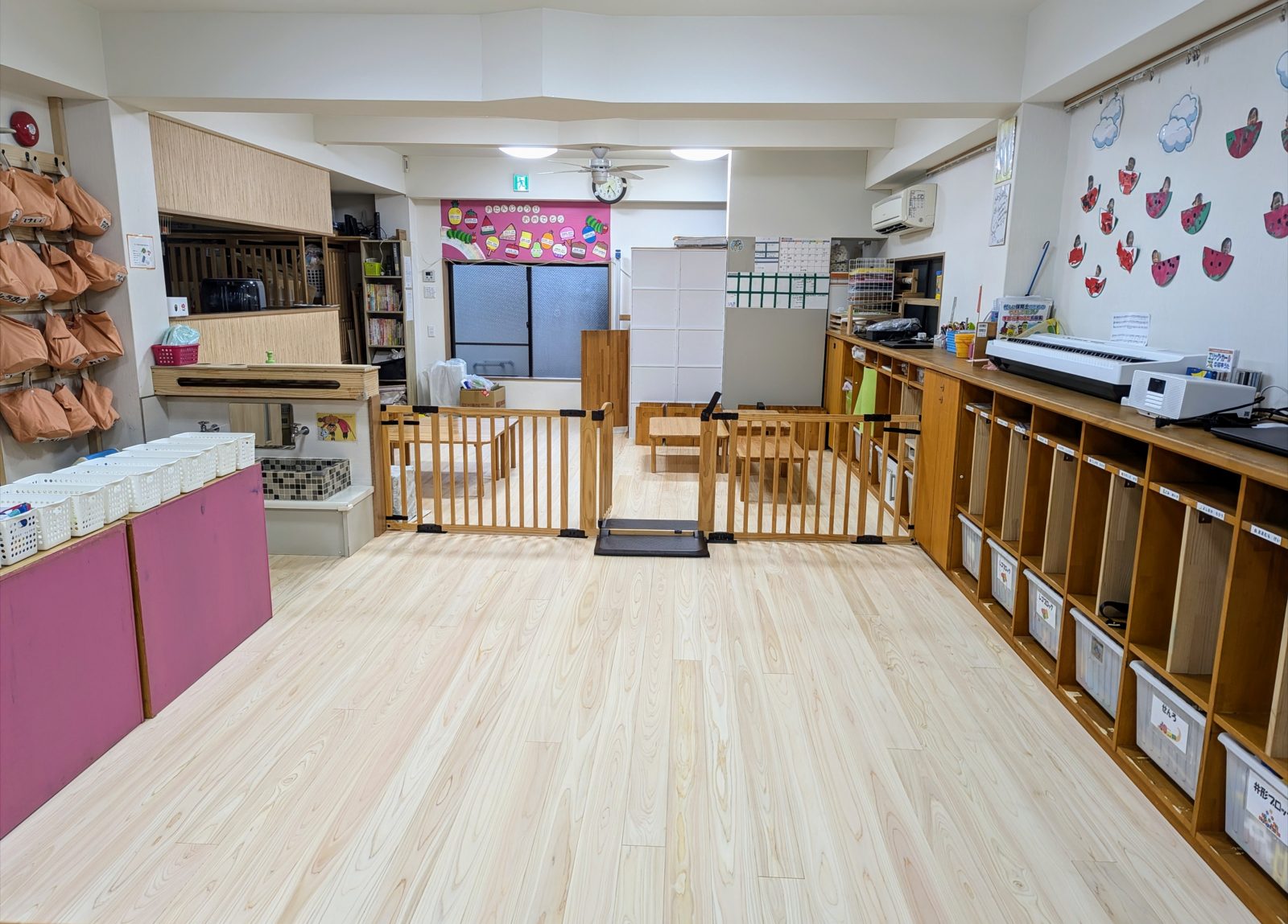 京都市伏見区にある小規模保育園の床の改修工事をしました。床全面、京都市の木材(桧)を贅沢に使用。床を変えるだけで園の雰囲気がとても明るくなりました。